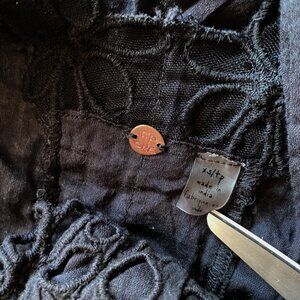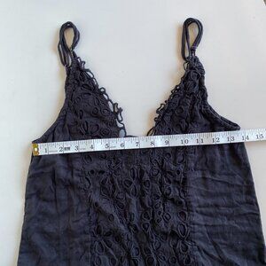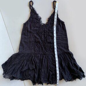FP One Free People Black Eyelet Lace Mini Dress XS Boho Cotton Slip Crochet