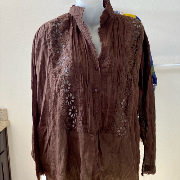 Semi-transparent, long sleeves, comfy-fit, front functional buttons, good pre-owned condition