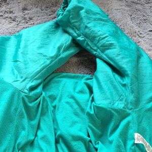 Teal jacket with zipper closure. Casual and chic style.