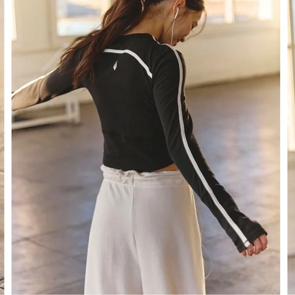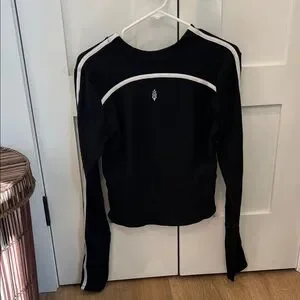 Free People Retro Rider workout top. Black with white stripe and FP logo. Size Large. Purchased and worn once, need a smaller size. Measurements upon request.