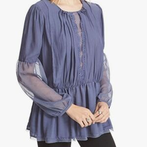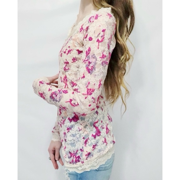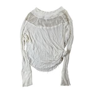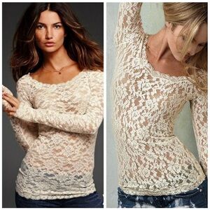 Free People Scandalous Vintage Y2K Vibes Bodycon Barbiecore Layering Piece Romantic Floral Sheer Lace Knit Long Sleeve Scalloped Round Neck Second Skin Sheer Delicate Mesh Knit Laced Up Balletcore Coquette Feminine Romantic Valentines Day Date Euro Summer Baddie Scandi Girl Top Shirt Barbie Blouse