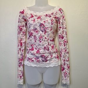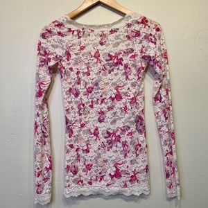 FP | Scandalous Y2K Coquette Scalloped Bodycon Floral Lace Sheer Second Skin Top