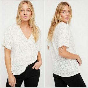 FP WE THE FREE Maddie Burnout Short Sleeve Slouchy Relaxed Fit Tee Cream Beachy