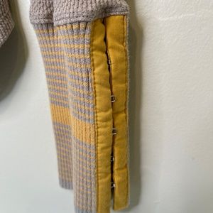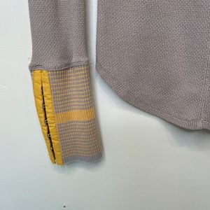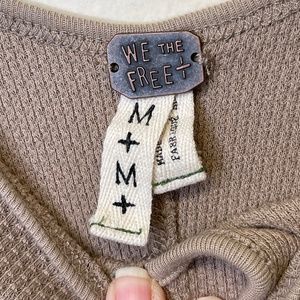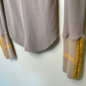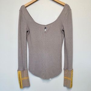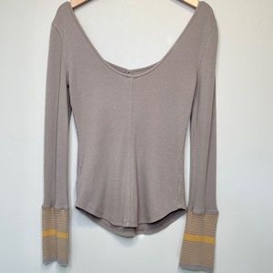 FP | WTF Taupe Thermal Striped Cuffs Scoop Neck Keyhole Boho Long Sleeve Shirt