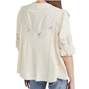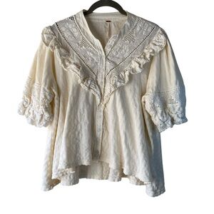 FP Walk in the Park ASO Taylor Swift Cream Ruffled Blouse Mandarin Collar SZ M