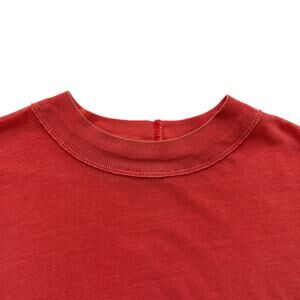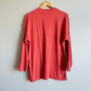 We The Free by Free People red orange long sleeve tee. Relaxed, oversized fit. Listed in fair condition for some wear at the edges of the collar and cuffs. 100% cotton.