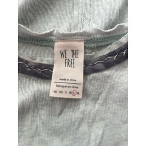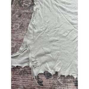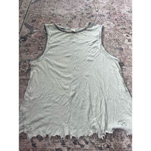 Very good condition. Very distressed ( purchased this way!) Free People We The Free tank top. Color is a light mint green with velvet grey trim. There are intentional rips and tears. Size large.