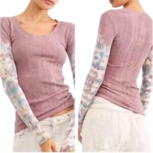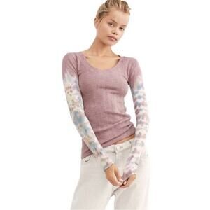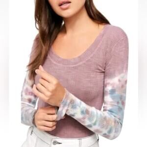 FP We the Free Big Sur Tie Dye Sleeve Tee In Misty Mountain Size M Boho Casual
