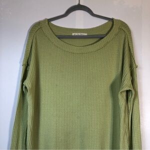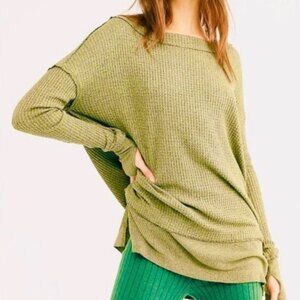 FP We the Free Green North Shore Thermal Waffle Knit Oversized Tunic Top Small
