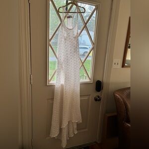 Please note!!! Two small holes on bottom in the back where train of dress is. Not visible to the eye when wearing. No other rips, tears, frays. Pictures included.