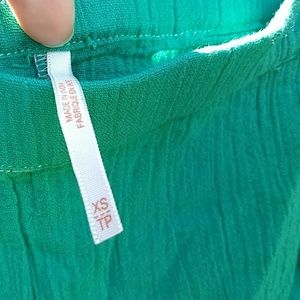 So feminine and comfy. Perfect for a tropical beach vacation. Tiered, loose fitting tube top and side scrunch shorts. Shorts are tiny but can be more modest if you don't scrunch up the sides. Gauzy material but not at all sheer. Never worn unfortunately but the elastic in the shorts broke so that would definitely need to be repaired before it could be worn.