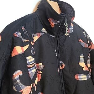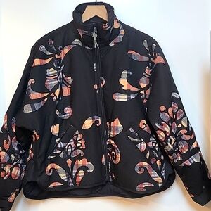 Stylish black jacket with colorful applique Perfect for a trendy look.