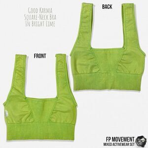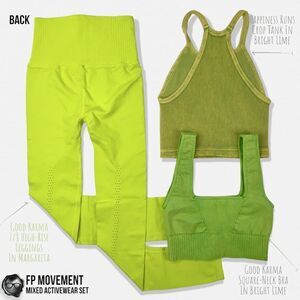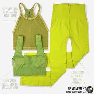 Free People Movement Workout Set: Good Karma Square Neck Bra + Leggings + HR Crop Tank in Bright Lime