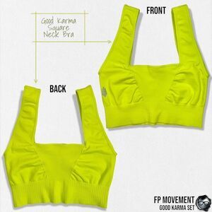 FP MOVEMENT GOOD KARMA SET: SQUARE NECK BRA + RUNNING SHORTS + LEGGINGS NEON NEW
