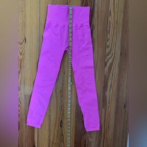 Lightly worn. Bold pink. Slight pilling (see picture). Size XS/S