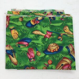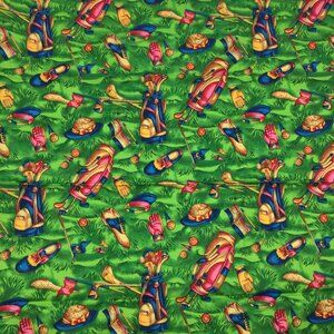 FQ Fat Quarter Quilting Fabric 18" x 22" Golf Golfing Bag Clubs Shoes Green Blue