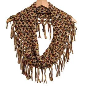 FRAAS Womens Multicolor Fringed Open Knit Loop Scarf Boho Lagenlook Casual Fall