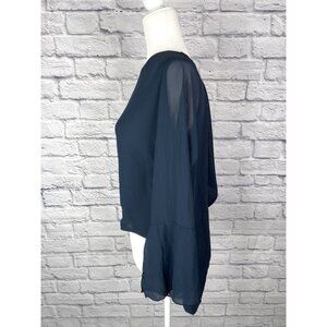 FRACOMINA Women's Navy Crop/Tie Back Flare Sleeve Blouse