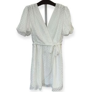 FRAICHE By J Swiss Dot Faux Wrap Minidress In White Size Large NEW