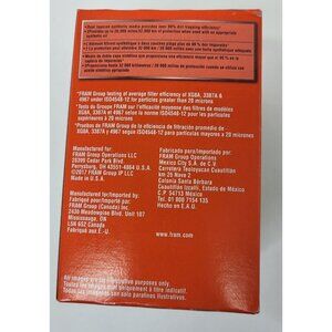 The filter is made by the renowned brand Fram, and it comes in a red-color design to complement your vehicle's appearance. This oil filter is made in the United States, ensuring high-quality standards.
