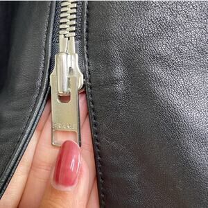 This streamlined leather coat is meant to grab attention with its front silver zipper, pointed collar and pintucked waist creating an effortlessly chic look. Pair it with boots, silver jewelry and a clutch.