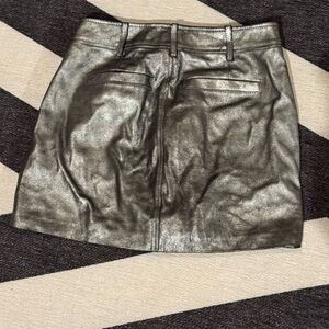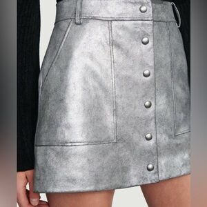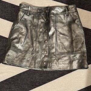 FRAME 100% Lambs Leather Silver Snap Up Mini Skirt Size 25