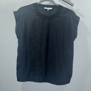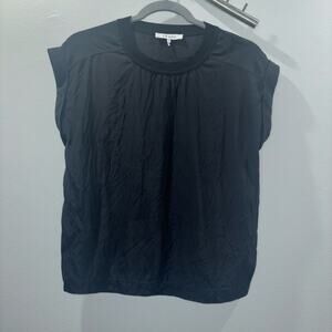 Elevate your wardrobe with this luxurious FRAME black silk top in size Extra Small. Crafted from 100% silk, this versatile piece features a sleek minimalist design with a slightly gathered neckline, cap sleeves, and a soft drape that flatters the figure. Perfect for both casual-chic looks and dressed-up occasions.
