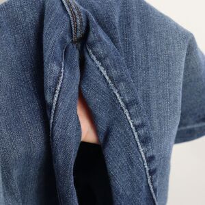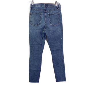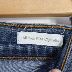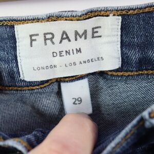 Pre owned in good condition, there is a little wear between thigh area but no holes and there are 2 white spots on back side of jeans. They still look great as seen in photos.