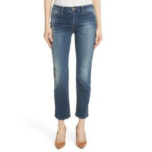 High-waist skinnies cut from FRAME's premium stretch denim perfectly contour to your curves, while light distressing and chewed hems add laid-back appeal.