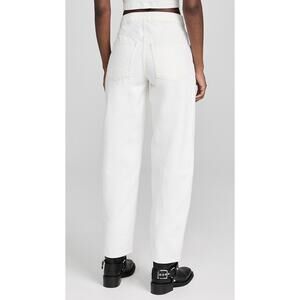 Designed for a high rise fit. Cut with a relaxed fit through the barrel leg. Non-stretch denim will soften and give with wear.