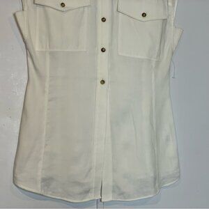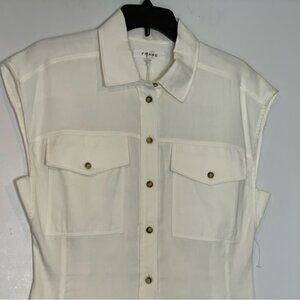 FRAME Arie Sleeveless Linen Button-Up Top in White