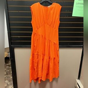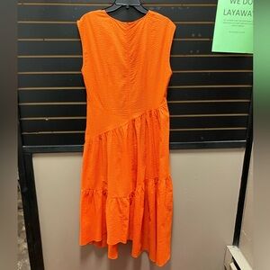 FRAME Asymmetric Tiered Seersucker Midi-Dress Orange Sleeveless Dress