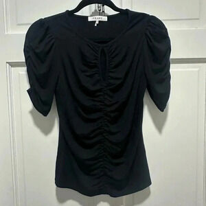 FRAME Black Key Hole Ruched Blouse Size XS EUC