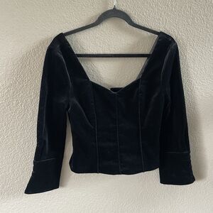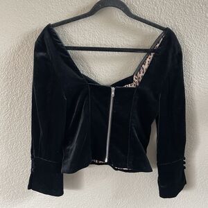 FRAME Blouse Womens Small Black velvet sweetheart neck Exposed Zipper Party Chic