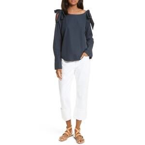 FRAME Bow Cold Shoulder Cotton Blouse In Navy Size M NWOT