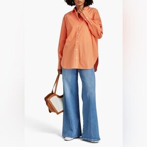 FRAME Bright Tangerine Orange Pinstripe Cotton Oversized Button Down Shirt Sz XS