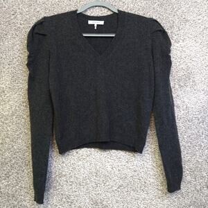 Frame cashmere sweater, Frame ruched shoulder pullover, Frame v-neck cashmere, designer gray cashmere sweater small, luxury cashmere top