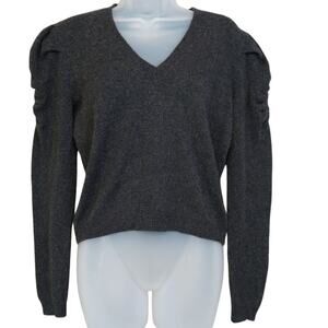 FRAME Cashmere Ruched Shoulder V-Neck Long Sleeve Sweater S