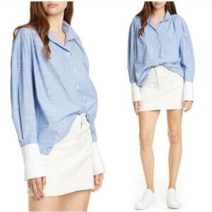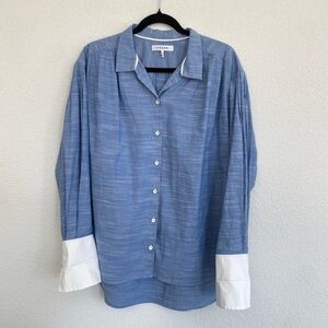 FRAME Chambray Ladies Collared Long Sleeve Button Down Cuffed Blouse Large