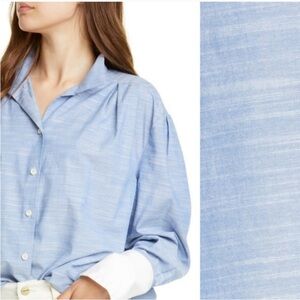 FRAME Chambray Ladies Collared Long Sleeve Button Down Cuffed Blouse Size Large