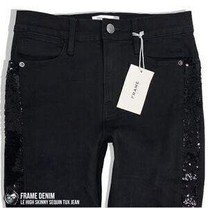 Frame Denim Le High Skinny Sequin Tux Jean in Noir Women’s Size 27