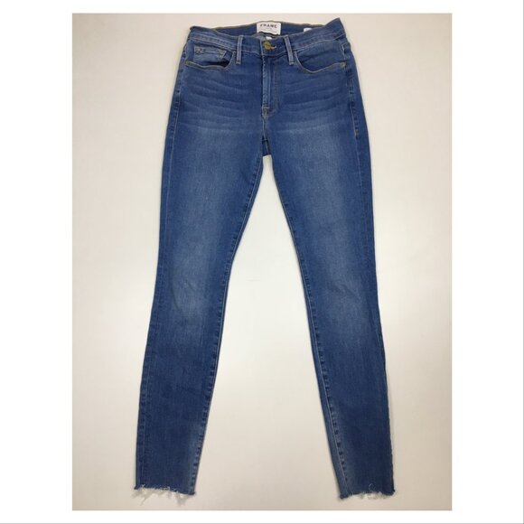 FRAME Denim 5Pocket Logo Button Beso Wash Le Skinny De Jeanne Raw Edge Hem Jeans