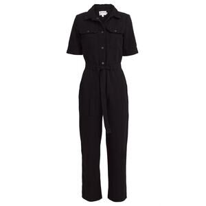 FRAME Denim Belted Cotton & Linen Jumpsuit in Black | Size XS