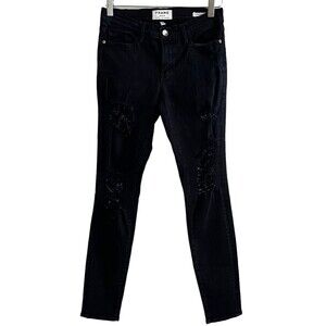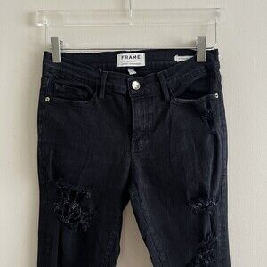 FRAME Denim Black Le Skinny De Jeanne Jeans Distressed ankle Size 27