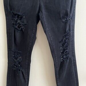 FRAME Denim Black Le Skinny De Jeanne Jeans Distressed ankle 27 festival goth