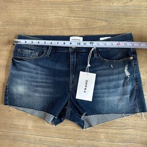 New with tags. Frame Le Cutoff denim shorts. Mid-rise, stretch. 93% cotton • 6% polyester • 1% elastane