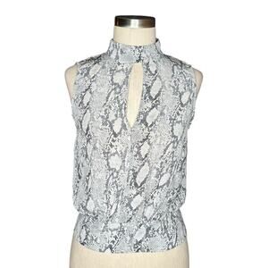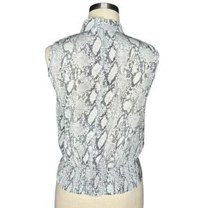 FRAME Denim Gray Snake Print Silk Sleeveless Blouse Women's Size Small Smocked