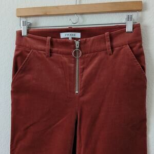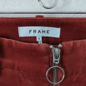 FRAME Denim High Waisted Velvet O-Ring Pants Exposed Zipper Size 0 Orange Spice