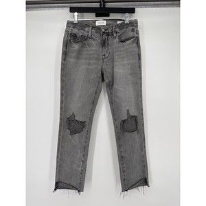 FRAME Denim Jeans Women's Size 23 Black Le Garcon Crop Straight Raw Hem Ankle