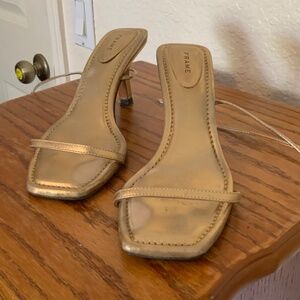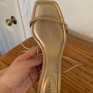 FRAME Denim LE OZZIE Gold Tie Up Kitten Heel Sandal - Size 7.5